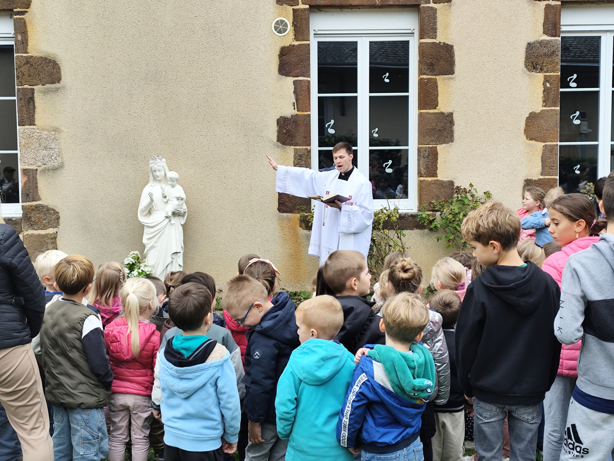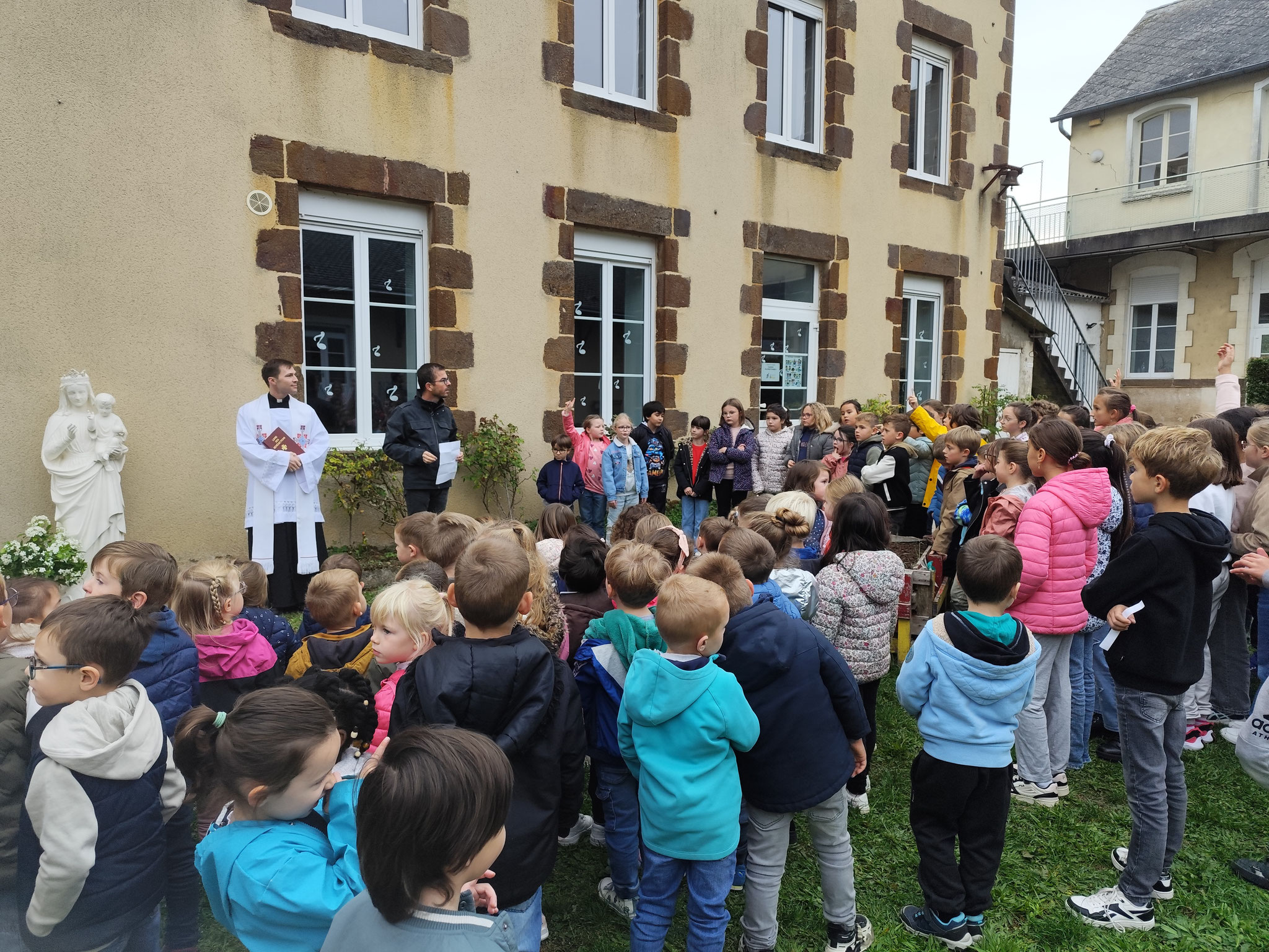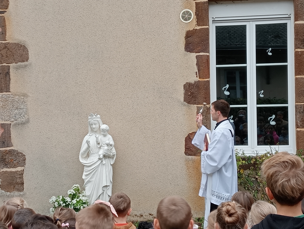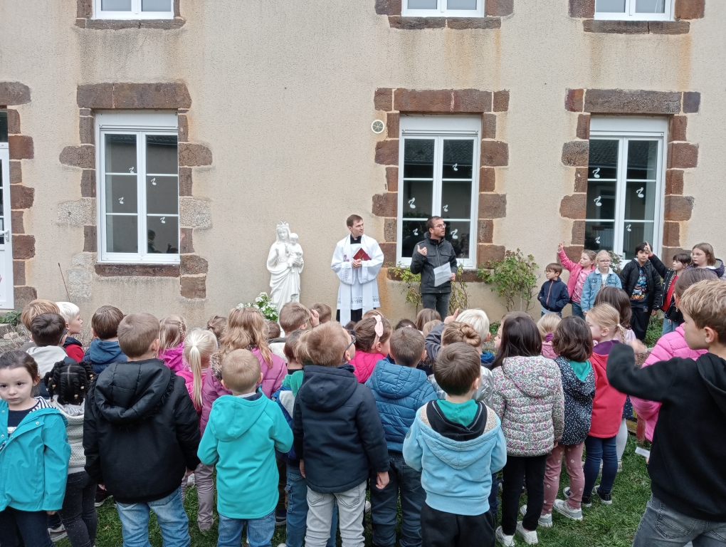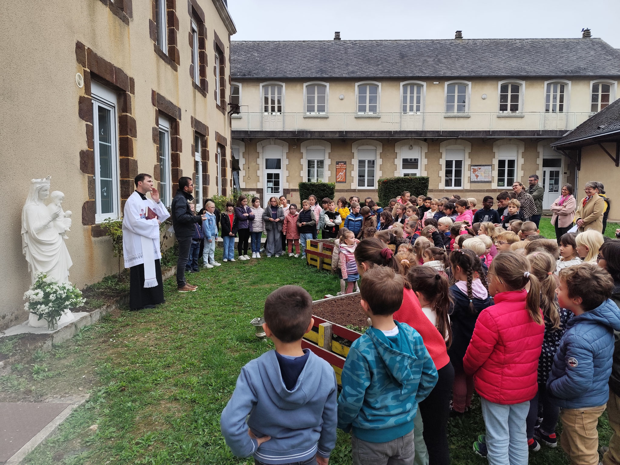 Pour célébrer cela, l'abbé Gautier est venue bénir cette statue en présence de tous les élèves. Un temps fort partagé tous ensemble !