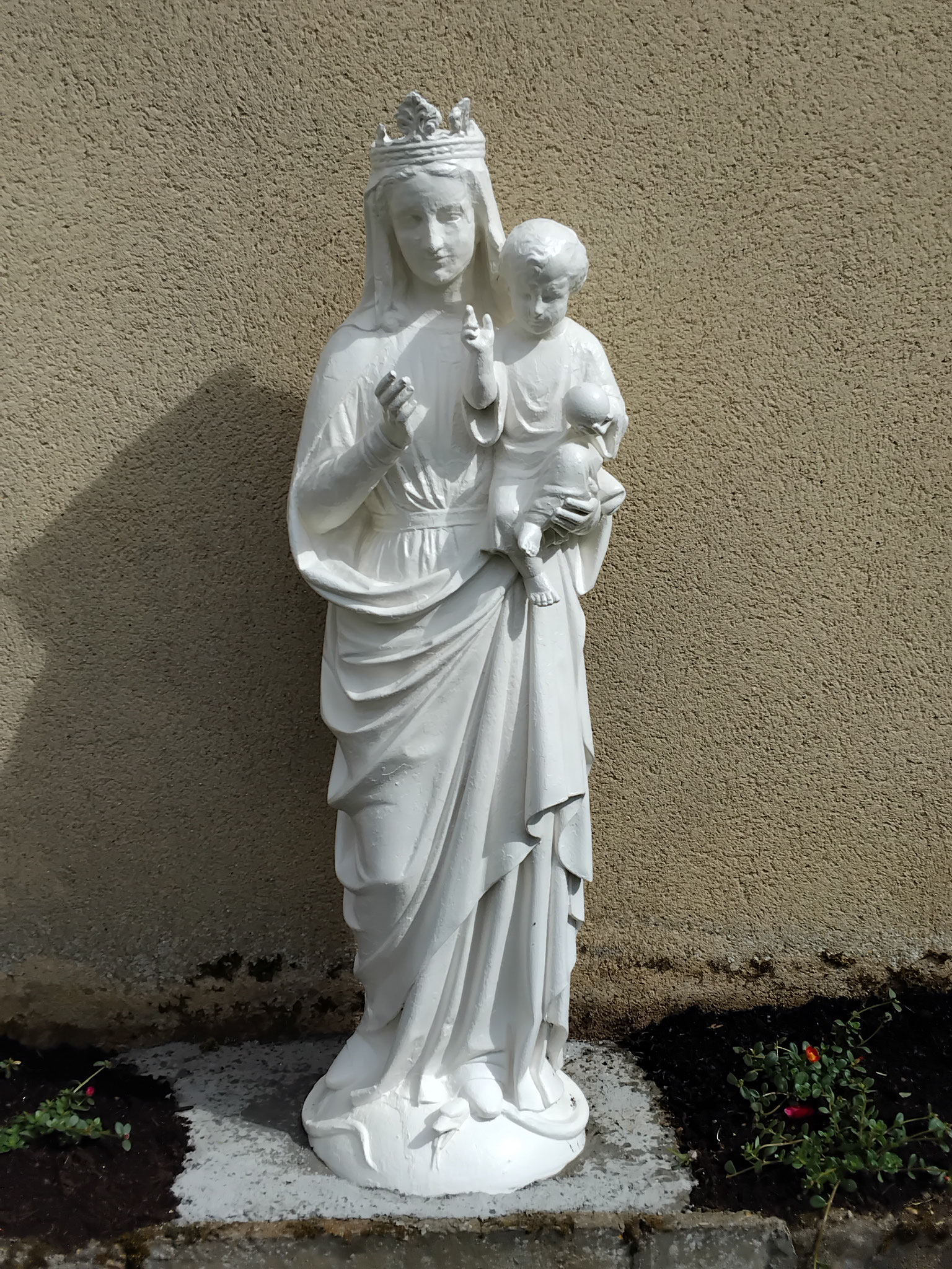 C'est grâce à des parents bénévoles qui n'ont compté ni leur temps ni leur énergie que cette statue, symbole de l'école, a pu être sauvegardée alors qu'elle se dégradait dangereusement. Les aléas du temps nécessitaient une restauration lourde et onéreuse mais grâce à cette famille que nous remercions infiniment, Notre Dame a retrouvé de sa superbe et une place de choix à l'entrée de l'école.