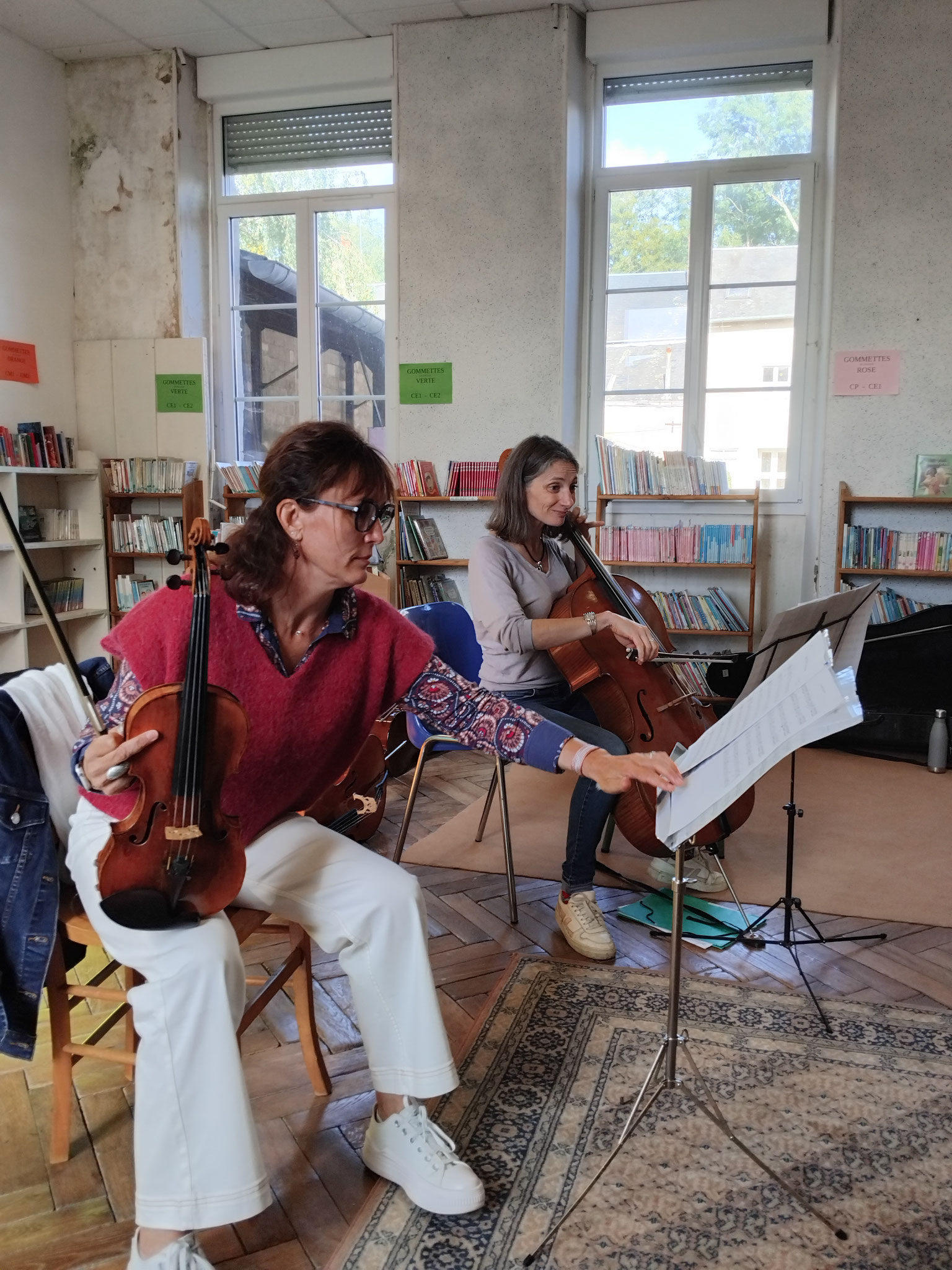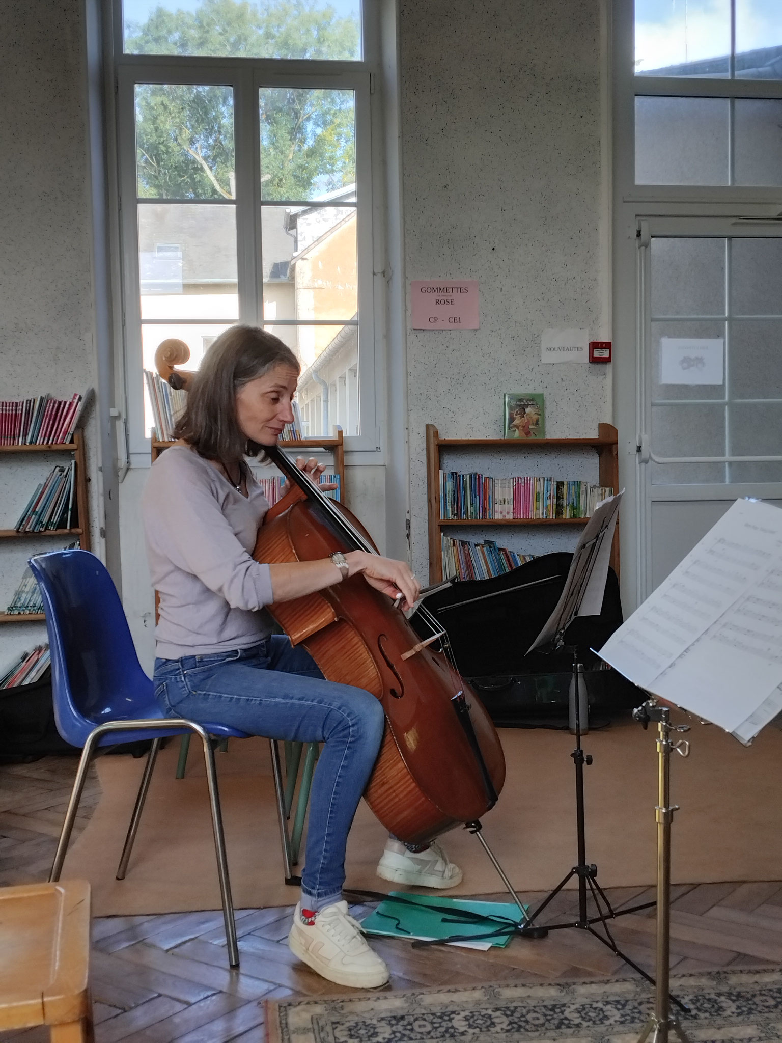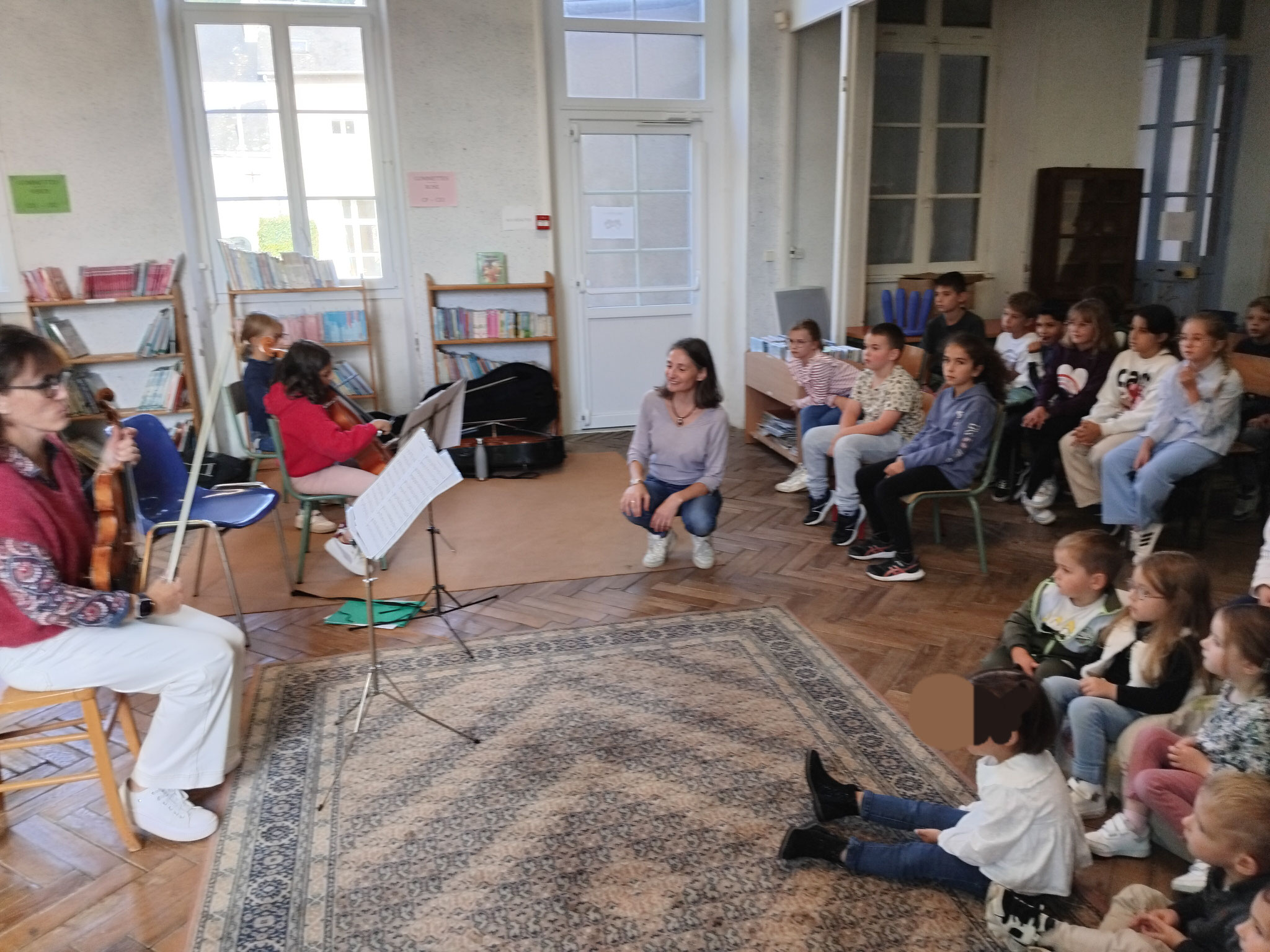 Aujourd'hui, tous les élèves de l'école ont pu assister à une présentation d'instruments par des professeur(e)s de l'école de musique. Au programme pour nos PS-MS : du violon, du violon "alto" et du violoncelle !