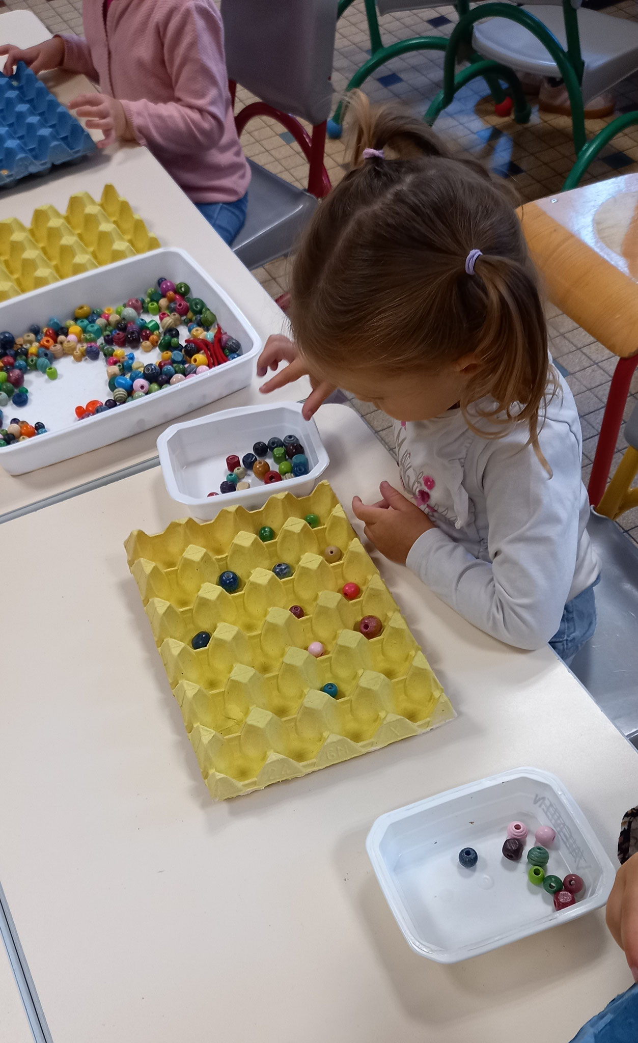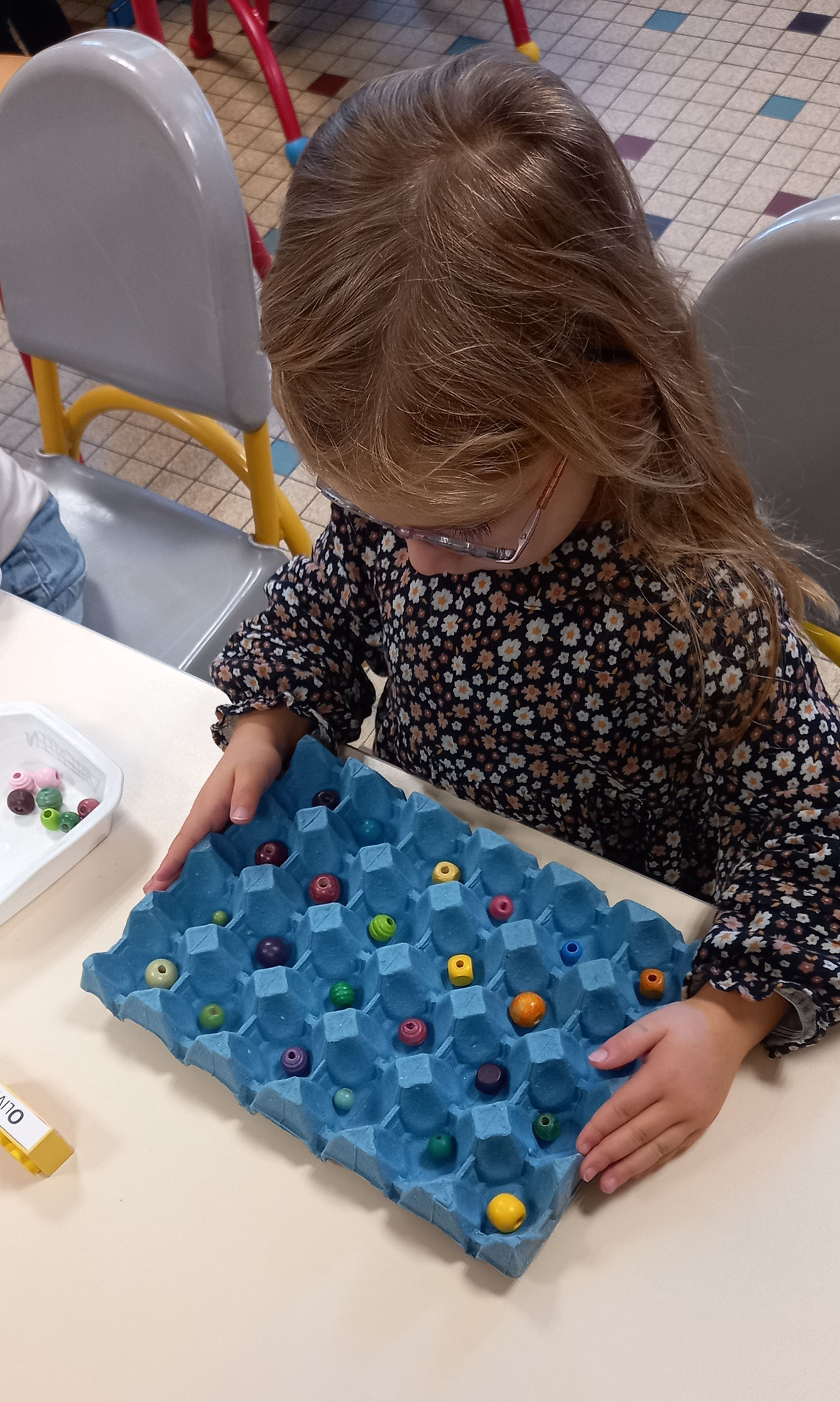 - La quantité "1" en PS, pas si simple qu'il n'y parait ! L'inhibition n'est pas innée et il faut résister à la tentation de mettre "beaucoup". Présentement, il fallait garer "1 voiture dans 1 garage" ou placer "1 perle dans 1 alvéole". Un passage obligé avant d'aller plus loin !