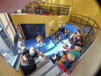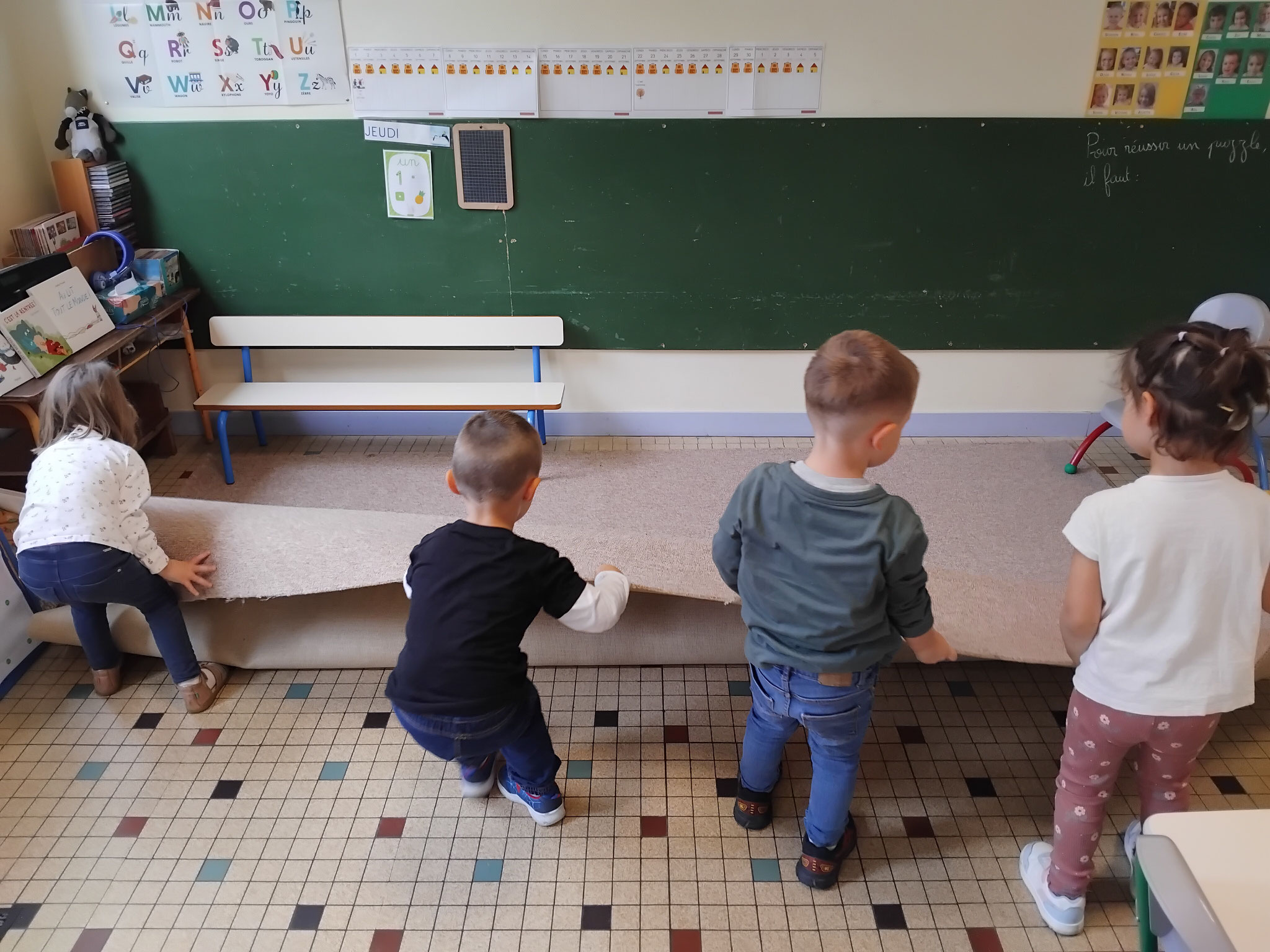 - Les élèves aident à installer le tapis de l'espace "regroupement".