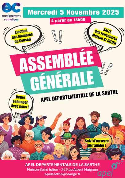 Bonjour, petit rappel, la randonnée se fera le dimanche 24 septembre 2023 et l'assemblée générale de l'APEL le mardi 3 octobre 2023.